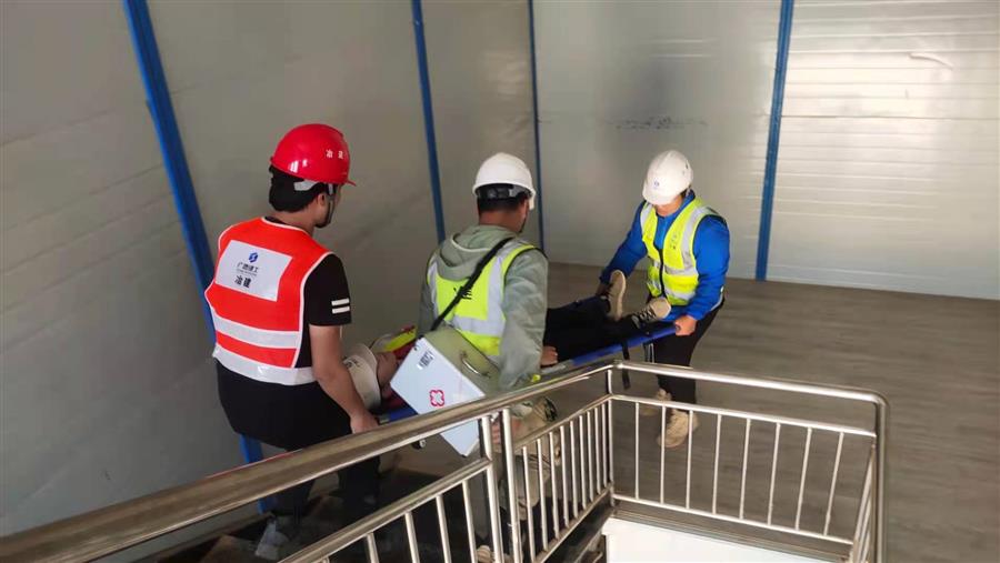 活動過程中,分公司經(jīng)理在項目部會議室向大家講解消防、觸電安全常識、應(yīng)急救援等相關(guān)知識點,并播放了相關(guān)教學(xué)視頻。項目安全總監(jiān)介紹了滅火器材的使用,并組織進行實地滅火實物操作演習。分公司管理人員、項目管理人員和從業(yè)人員分別進行了觸電應(yīng)急救援,火災(zāi)人員疏散,滅火器、消防水槍使用演練。