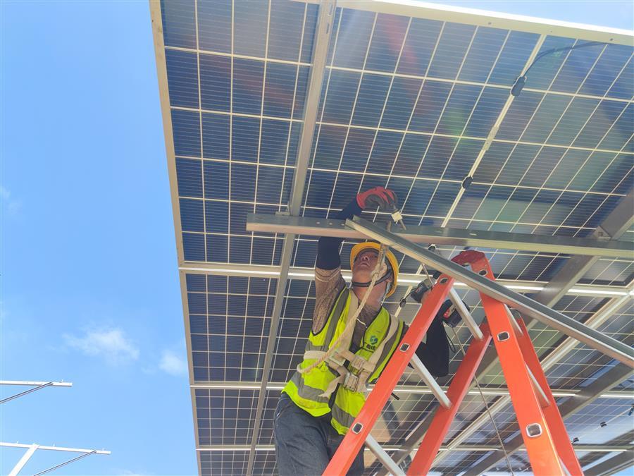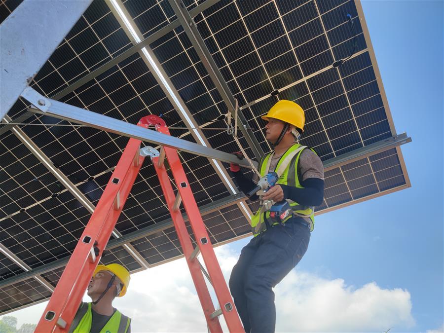 天氣炎熱,項目部及時調整施工方案,精心組織,科學調度,確保大家的身體健康和工程建設進度兩不誤。截至目前,該項目已完成樁基澆筑工作的30.13%,支架和光伏板安裝工作的18%。