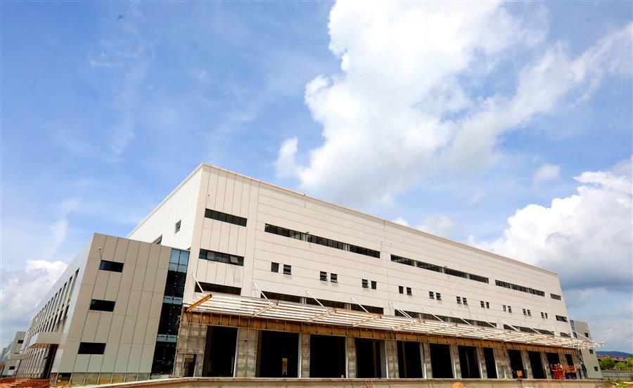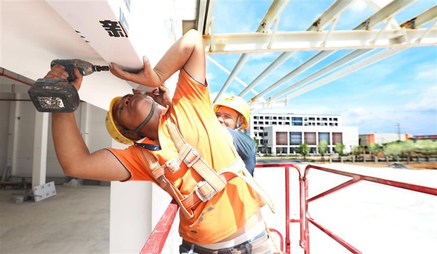 該項(xiàng)目負(fù)責(zé)人莫劍生介紹,倉儲配一體庫主要建設(shè)6棟庫房,目前項(xiàng)目主體基本建成,正緊張有序收尾。為了加快項(xiàng)目進(jìn)度,項(xiàng)目部在做好防暑降溫、安全施工等保障措施的同時,采取多班組、多工種在不同的庫房交叉作業(yè),目前工地上有七八個班組在施工,施工內(nèi)容包括外立面、擋雨棚、通風(fēng)管、地面硬化施工等。