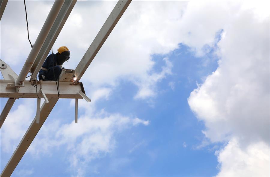 炎炎夏日,擋不住項(xiàng)目推進(jìn)的步伐。7月20日,由冶建公司承建的柳州鐵路港核心區(qū)(西鵝鐵路物流中心)倉儲配一體庫項(xiàng)目施工現(xiàn)場,皮膚黝黑的覃五偉在工友的配合下,迅速而準(zhǔn)確地把一塊塊外立面板材安裝到位,與此同時在該項(xiàng)目現(xiàn)場、不同作業(yè)崗位上的,還有幾十名工人,正在揮汗如雨地工作,大家克服困難、齊心協(xié)力施工,就是為了盡快完成項(xiàng)目的收尾工作,早日交付。