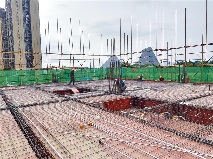 在項(xiàng)目現(xiàn)場(chǎng),每天有50多名工人頂著高溫,相互配合,有條不紊地進(jìn)行鋼筋加工、綁扎鋼筋、混凝土澆筑等工作。為了趕工期,他們時(shí)常加班加點(diǎn)工作到深夜,同時(shí)還認(rèn)真按照工藝標(biāo)準(zhǔn)逐條逐項(xiàng)落實(shí)每一項(xiàng)細(xì)節(jié),嚴(yán)把工藝質(zhì)量。