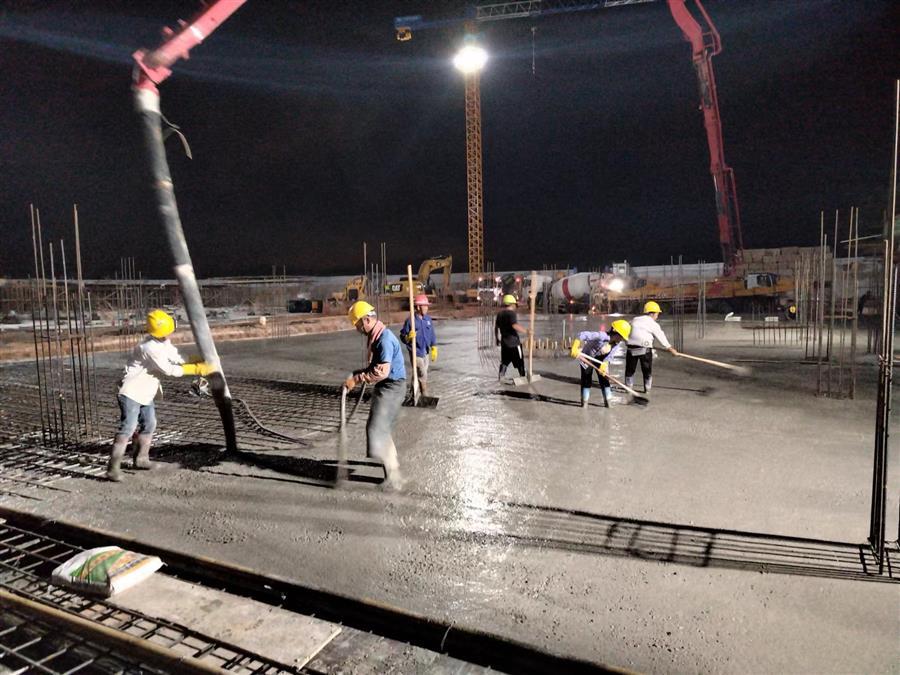 面對(duì)高溫酷暑,北岸苑項(xiàng)目部安排技術(shù)人員輪班到現(xiàn)場(chǎng)進(jìn)行巡查、監(jiān)督、指導(dǎo),認(rèn)真做好防暑降溫、安全施工、后勤保障等工作,同時(shí)項(xiàng)目部還增加人力物力、加班加點(diǎn)搶抓施工進(jìn)度。當(dāng)前每天約有200人的鋼筋班組、木工班組和混凝土班組在現(xiàn)場(chǎng)有序進(jìn)行安裝模板、搭設(shè)支架、綁扎鋼筋、推動(dòng)混凝土等工作。截至目前,地塊一(1-6#)土方挖運(yùn)完成90%;地塊二(7-14#)主樓樁基礎(chǔ)全部施工完成,地下室部分結(jié)構(gòu)施工完成50%。