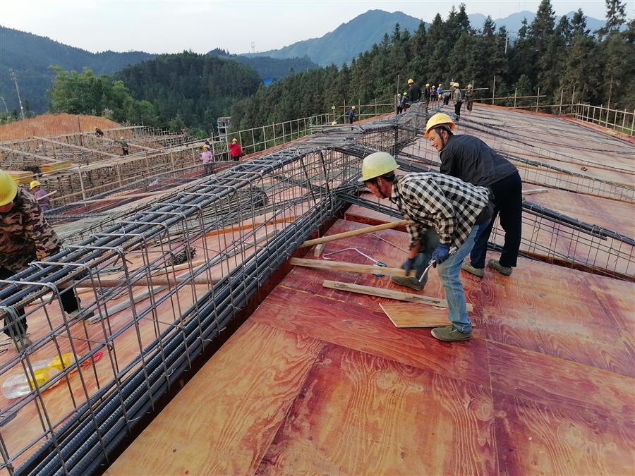 該項目位于融水邊遠山區(qū),施工條件艱苦,項目管理人員直面困難,全力抓好項目施工生產、安全質量等各項管理工作,確保項目建設有序推進。目前,項目施工正有條不紊地推進,5#樓一層屋面鋼筋綁扎完畢,4#樓一層屋面模板安裝完畢,1#樓一層內架搭設完,7#樓正在基礎施工。