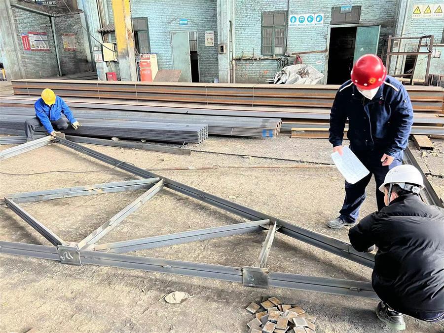 廣西柳鋼環(huán)保公司鋼渣廠1#廠房氣窗及3-11#柱屋面鋼結(jié)構(gòu)與彩瓦更換工程鋼結(jié)構(gòu)預(yù)制加工現(xiàn)場,焊接“火花”不斷,工人作業(yè)有序。據(jù)了解該項目屬于檢修項目,工期緊,需提前加工預(yù)制完后,才能拆除現(xiàn)場舊屋架,現(xiàn)場生產(chǎn)環(huán)境高溫腐蝕嚴重,為了確保項目施工安全,施工班組每天進場前都要進行安全交底。當前,該項目完成5片屋架組隊,2跨天窗主體鋼框架,所有構(gòu)件制作完成,整體已完成年前計劃進度約85%,加工過程中甲方隨機抽檢均合格。