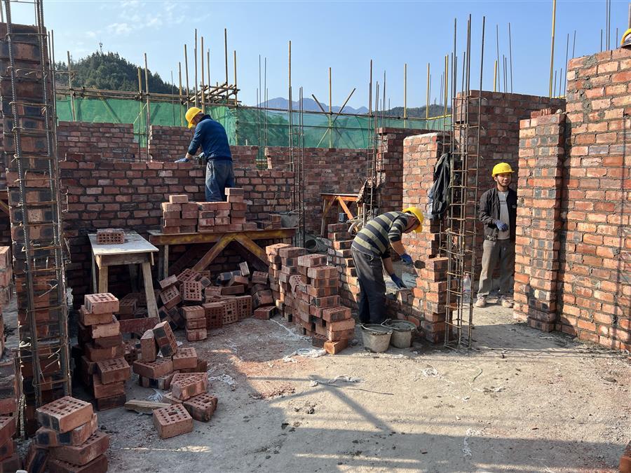 融水苗族自治縣安陲鄉(xiāng)江門村鄉(xiāng)村振興產(chǎn)業(yè)園項目總建筑面積約8420平方米。項目建設內(nèi)容包括:園區(qū)標準廠房建設及道路工程、場地平整、雨水、污水、給水、室外電氣及室外綠化工程;廠房結(jié)構(gòu)形式為框架結(jié)構(gòu)。目前,項目1#廠房二層磚墻砌磚40%;4#、5#廠房外墻磚砌筑90%;7#廠房主體結(jié)構(gòu)屋面鋼筋綁扎完成。