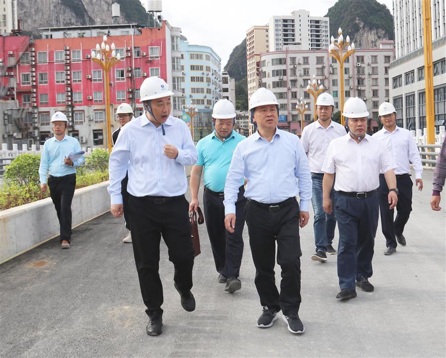 10月20日,河池市委書記秦春成到冶建公司桂金分公司承建的河池市龍江六橋(輝樂橋)調(diào)研指導(dǎo)工作。河池市金城江區(qū)委書記潘廣軍,業(yè)主單位河池市城鄉(xiāng)建設(shè)投資集團(tuán)有限公司黨委書記、董事長尚斌參加調(diào)研。