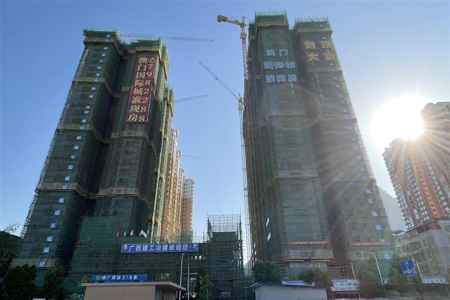 河池·澳門國際城四期工程總建筑面積13.76萬平方米,由4#樓5#樓、地庫以及配套設(shè)施工程和1#樓2#樓3#樓工程兩大部分組成。該項目按照既定的節(jié)點全面鋪開施工,既抓嚴抓細抓好關(guān)鍵環(huán)節(jié)施工管理,又積極主動推進項目創(chuàng)優(yōu)工作,確保施工生產(chǎn)與項目創(chuàng)優(yōu)兩不誤。據(jù)了解,4#樓5#樓外架拆除均至15層;地下室分部工程水電消防安裝已接近收尾。1#樓磚砌體完成至22層,2#樓磚砌體完成至27層,3#樓磚砌體已完成、二次結(jié)構(gòu)施工至24層。2023年,本項目先后獲得河池市建筑施工安全文明工地、廣西建設(shè)工程安全文明標準化工地等榮譽。