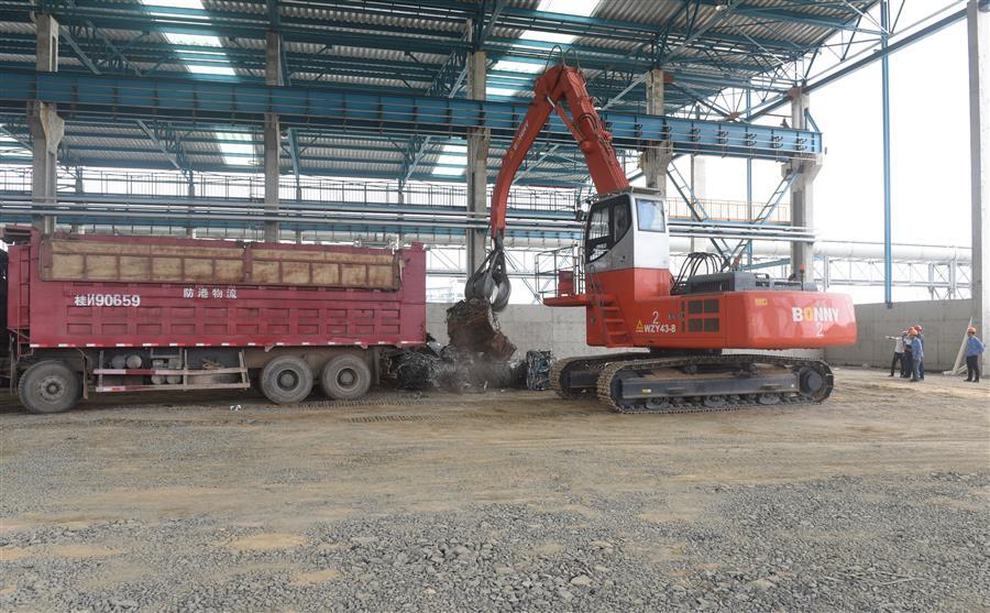 儀式上,3000噸一類沖壓片包塊廢鋼在廣西鋼鐵1萬(wàn)噸碼頭卸船,隨后順利進(jìn)入設(shè)備安裝分公司承建的防城港鋼鐵基地項(xiàng)目(一期)廢鋼處理系統(tǒng)金屬材料加工配送中心廠房及公輔設(shè)施建設(shè)項(xiàng)目1#庫(kù)廠房,在場(chǎng)所有人見證了料場(chǎng)啟用。3000噸一類沖壓片包塊廢鋼順利進(jìn)場(chǎng),這意味著該項(xiàng)目正式啟用,并取得了階段性勝利。