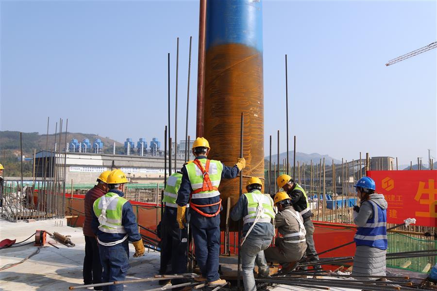 自動(dòng)工以來,公司就高度重視項(xiàng)目的建設(shè)情況,公司領(lǐng)導(dǎo)靠前指揮、率先垂范,多次到項(xiàng)目調(diào)研指導(dǎo)工作。項(xiàng)目部在公司的有力指導(dǎo)下,積極應(yīng)對(duì)施工難度大、工期緊任務(wù)重、建筑形態(tài)復(fù)雜、圖紙變更頻繁等困難,周密組織,科學(xué)謀劃,凝心聚力,持續(xù)發(fā)揚(yáng)“5+2”“白加黑”連續(xù)作戰(zhàn)精神,嚴(yán)抓工期、質(zhì)量、安全和成本管理,緊張有序推進(jìn)項(xiàng)目施工,為燒成窯尾鋼結(jié)構(gòu)的順利吊裝奠定基礎(chǔ)。此次吊裝前,項(xiàng)目技術(shù)團(tuán)隊(duì)對(duì)施工吊裝制定了專項(xiàng)方案,確保吊裝作業(yè)安全和吊裝定位精確,推進(jìn)吊裝作業(yè)順利進(jìn)行。
