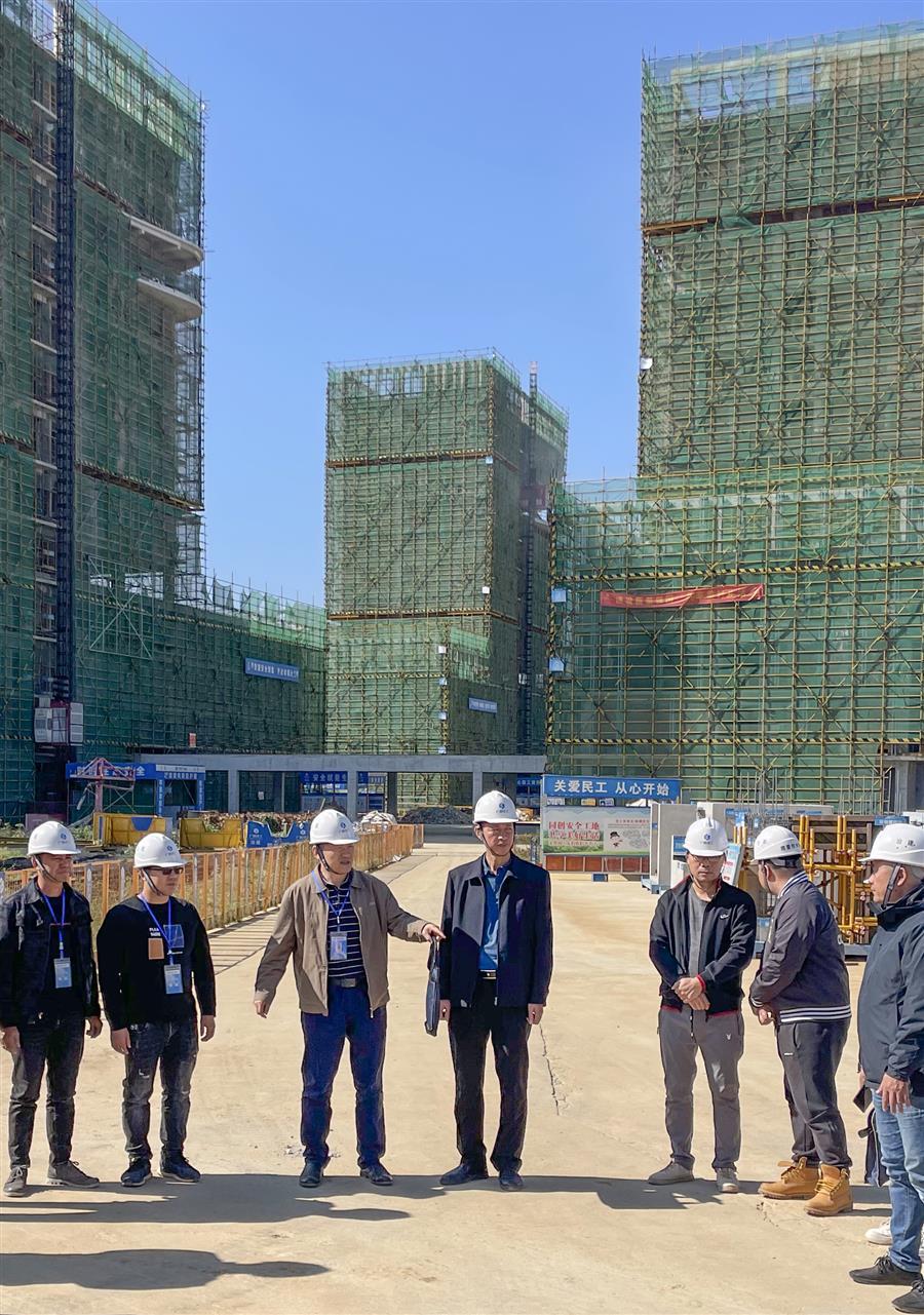 何勇深入項目施工現(xiàn)場,詳細了解項目安全質(zhì)量、建設(shè)進度等情況,并對模板、外架、臨時用電、樓層臨邊防護、農(nóng)民工工資發(fā)放、疫情防控等工作進行了仔細檢查。