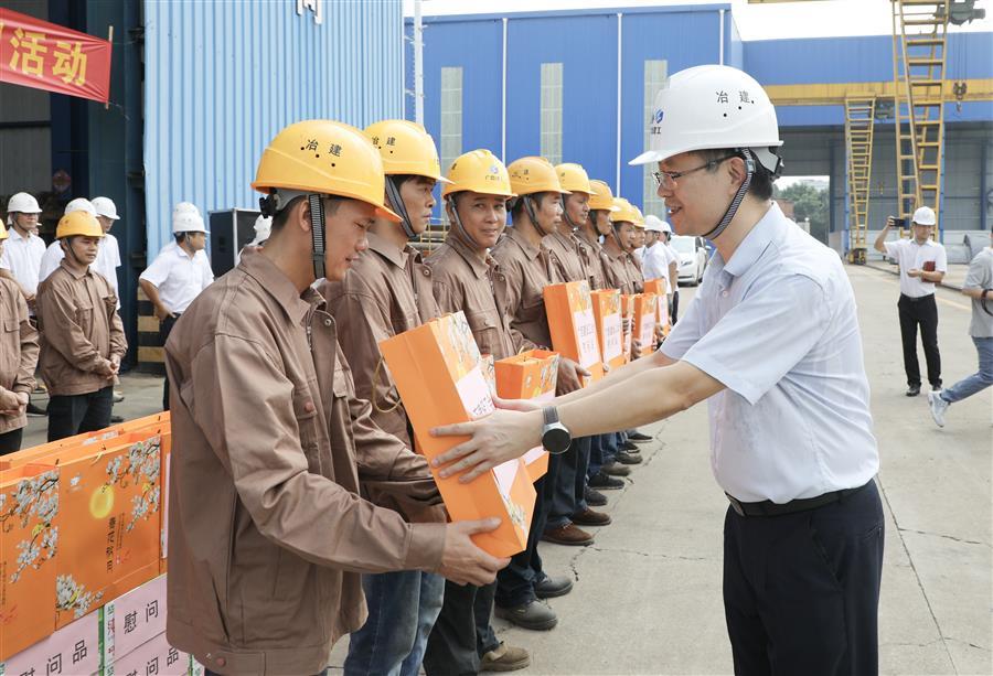 9月24日,自治區(qū)住房城鄉(xiāng)建設(shè)廳黨組成員、副廳長潘國雄帶隊(duì)到廣西建工集團(tuán)冶金建設(shè)有限公司,開展“情系職工”中秋慰問活動(dòng)。集團(tuán)公司黨委副書記、工會(huì)主席陳家堅(jiān),柳州市住建局黨組書記陳剛,集團(tuán)公司組織人事部副總經(jīng)理向丹,冶建公司總經(jīng)理、黨委副書記蒙勝益,冶建公司黨委副書記、紀(jì)委書記、工會(huì)主席賴海標(biāo)參加。廣西建設(shè)工會(huì)副主任、二級(jí)調(diào)研員鄒麗萍參加并主持慰問活動(dòng)。