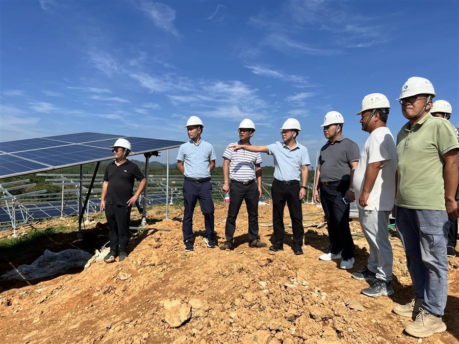 10月24日,冶建公司財(cái)務(wù)總監(jiān)陶禮智帶隊(duì)到基礎(chǔ)分公司承建的弘光能源瓊中加釵100MW農(nóng)林光互補(bǔ)光伏發(fā)電項(xiàng)目調(diào)研指工作。