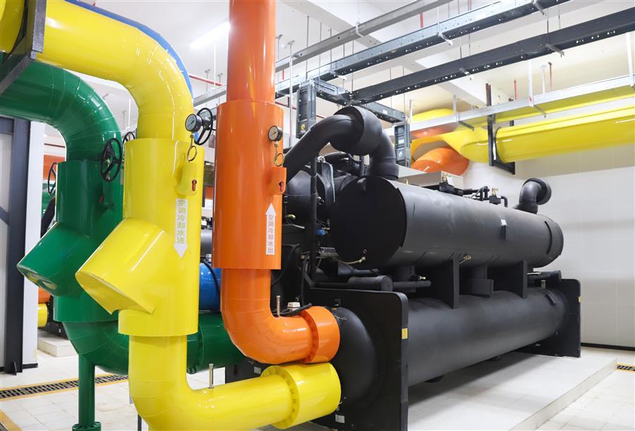 空調(diào)機(jī)房設(shè)備排布成排成行,空間合理,管線(xiàn)采用落地式共用管架。