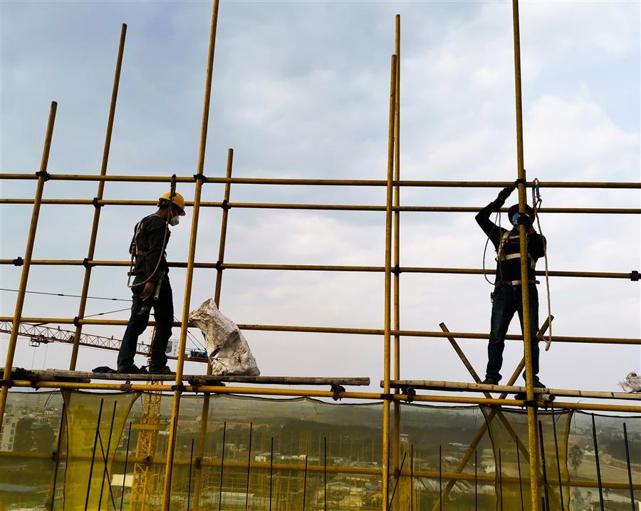在中房綠景二期項(xiàng)目現(xiàn)場,機(jī)器轟鳴,不同工種的工人正在緊張有序開工,一幅熱火朝天的景象替代了往日的寂靜。