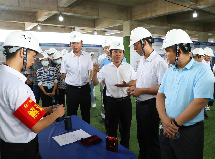 活動中,龍杏華首先表示,此次觀摩會是來賓市近年來舉辦過水平最高的一次觀摩會,感謝廣西建工冶建公司以及現(xiàn)場管理人員的努力付出,大家秉承工匠精神建設出了工程質量優(yōu)、安全文明標準高的示范項目。隨后,龍杏華還宣講了習近平總書記關于安全生產(chǎn)的重要論述,并對下一步工作提出三點要求。一是高度重視,強化學習,提高安全生產(chǎn)理論基礎。全市住建系統(tǒng)、各建筑企業(yè)要扎實開展安全生產(chǎn)警示教育學習和典型事故案例警示宣講活動,督促行業(yè)從業(yè)人員深刻汲取事故教訓,提高安全防范意識、風險辨識能力和應急處置能力,督促企業(yè)相關責任人強化安全生產(chǎn)紅線意識和底線意識,確保安全生產(chǎn)。二是深刻吸取事故教訓,全面做好建筑施工安全生產(chǎn)工作。要強化建筑施工預防坍塌、防墜落事故專項檢查;強化企業(yè)安全生產(chǎn)主體責任落實;強化建設工程行業(yè)主管部門監(jiān)管責任落實;強化對建筑施工事故依法嚴肅查處;強化安全生產(chǎn)和文明施工宣傳教育培訓;切實做好汛期和夏季消防安全工作。三是繼續(xù)推進“一金七制”,全面做好建筑領域治欠保支各項工作。要繼續(xù)推進“桂建通”平臺應用;全面梳理排查,健全完善在建工程項目臺賬;要健全根治機制,加強部門協(xié)同配合。