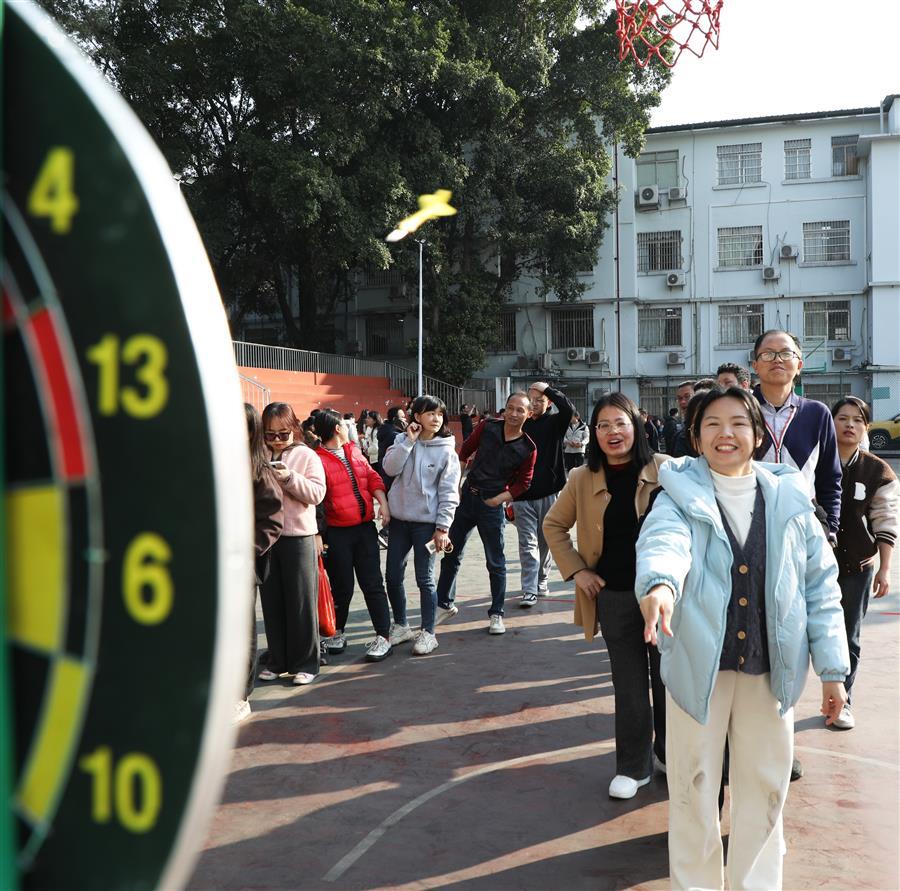 活動(dòng)現(xiàn)場(chǎng)處處歡聲笑語(yǔ)、熱鬧非凡,一派歡樂(lè)祥和的景象。在集體項(xiàng)目團(tuán)隊(duì)滾鐵環(huán)接力賽、單腿跑火車接力賽中,參與比賽的員工配合默契、銜接緊密、奮力爭(zhēng)先,場(chǎng)面激烈,觀眾的掌聲、笑聲、喝彩聲此起彼伏。游園活動(dòng)還設(shè)置擲壺、飛鏢、滾球入桶、定點(diǎn)投籃、盲人擊鼓、套活雞活鴨等8項(xiàng)個(gè)人項(xiàng)目,大家有序排隊(duì)積極參與,樂(lè)在其中,收獲滿滿,為即將到來(lái)的蛇年新春增添了滿滿的喜氣。