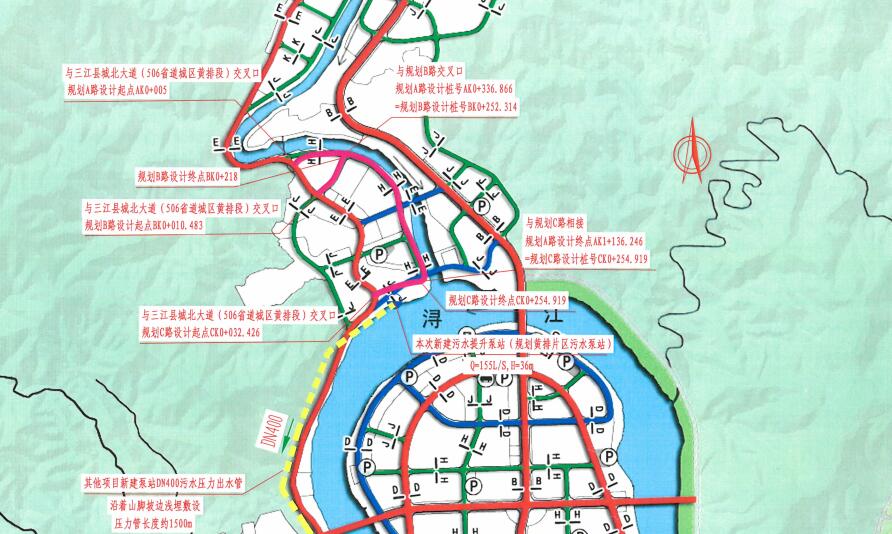 該項目位于柳州市三江侗族自治縣黃排片區(qū),結(jié)合規(guī)劃區(qū)發(fā)展的功能需求,圍繞著三江縣新三江中學學校地塊,規(guī)劃形成“一帶、一環(huán)、四心、五軸、七片”的城市結(jié)構(gòu)體系與“山、水、城、田、人”相融的組團城市格局?!耙粠А敝缸詵|向西貫穿城區(qū)的潯江風情帶,連接縣城多個片區(qū);“一環(huán)”是由潯江大道-侗鄉(xiāng)大道-河西老城西環(huán)線-宜陽大道構(gòu)成的城市環(huán)線;“四心”分別是指潯江半島行政文體中心、河東侗鄉(xiāng)民族文化中心、大洲島旅游活動中心和火車南站客運樞紐中心;“五軸”分別是指連接到城市環(huán)線的桂三高速公路連接線、209 國道周坪段、321 國道周坪段、龍吉大道和三柳高速公路程村連接線;“七片”則分別是指黃排片區(qū)、河西老城片區(qū)、河東新城片區(qū)(含潯江半島)、周坪片區(qū)、大洲島片區(qū)、龍吉片區(qū)和火車南站片區(qū)。