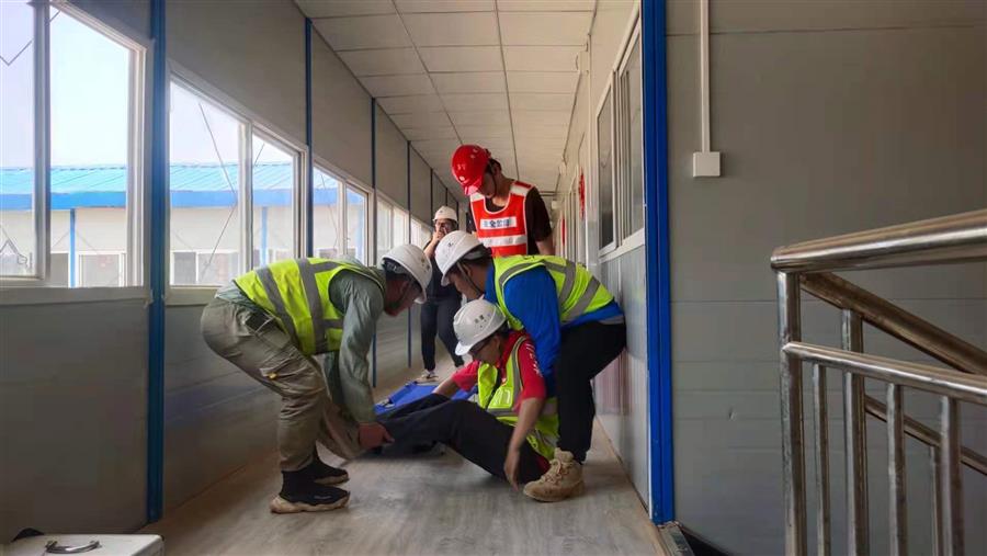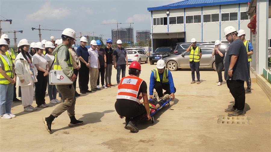 活動過程中,分公司經(jīng)理在項目部會議室向大家講解消防、觸電安全常識、應(yīng)急救援等相關(guān)知識點,并播放了相關(guān)教學(xué)視頻。項目安全總監(jiān)介紹了滅火器材的使用,并組織進行實地滅火實物操作演習。分公司管理人員、項目管理人員和從業(yè)人員分別進行了觸電應(yīng)急救援,火災(zāi)人員疏散,滅火器、消防水槍使用演練。