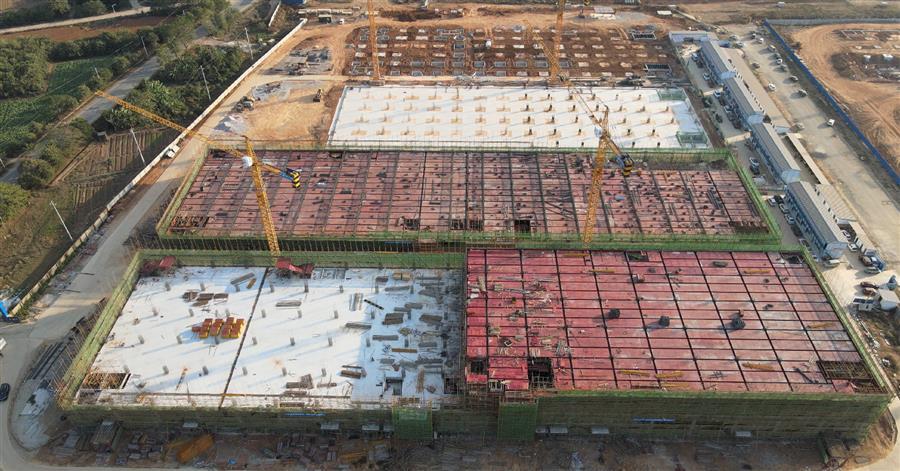 項目部的高效管理鼓舞了全員的干勁,調動了施工積極性。目前,項目B地塊1#廠房承臺開挖完成100%,承臺澆筑完成85%;2#廠房承臺澆筑完成100%;3#廠房二層模板安裝完成96%,其他建設工作正在有序推進。
