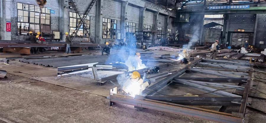 廣西柳鋼環(huán)保公司鋼渣廠1#廠房氣窗及3-11#柱屋面鋼結(jié)構(gòu)與彩瓦更換工程鋼結(jié)構(gòu)預(yù)制加工現(xiàn)場,焊接“火花”不斷,工人作業(yè)有序。據(jù)了解該項目屬于檢修項目,工期緊,需提前加工預(yù)制完后,才能拆除現(xiàn)場舊屋架,現(xiàn)場生產(chǎn)環(huán)境高溫腐蝕嚴重,為了確保項目施工安全,施工班組每天進場前都要進行安全交底。當前,該項目完成5片屋架組隊,2跨天窗主體鋼框架,所有構(gòu)件制作完成,整體已完成年前計劃進度約85%,加工過程中甲方隨機抽檢均合格。
