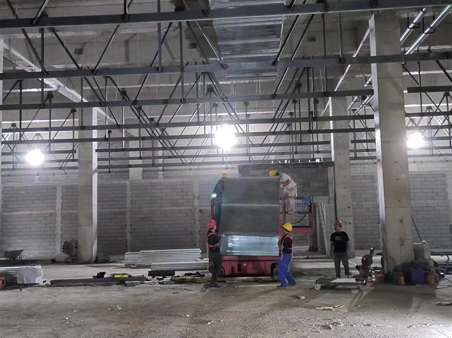 目前,項目1#聯(lián)合廠房鋼結構轉換層焊接安裝已完成70%;消防管道安裝完成60%;墻體砌筑及二次結構施工完成90%;內外墻抹灰完成40%;暖通管道制作、安裝完成30%;屋面保溫層完成80%。