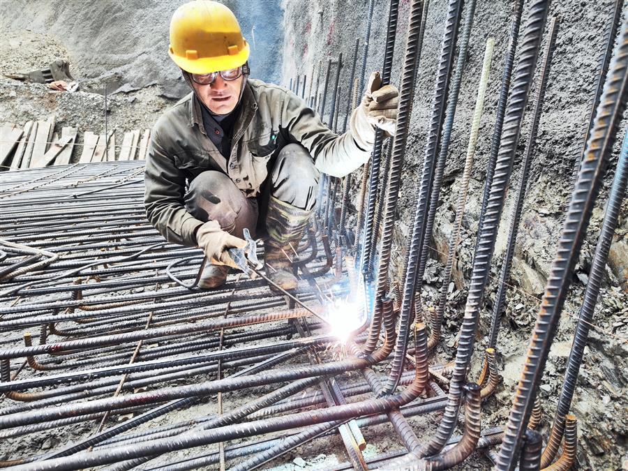 在施工現(xiàn)場,機器轟鳴,挖掘機正在對隧道明洞部分的土方進行開挖,出渣車有序作業(yè)外運渣土;工人們正有條不紊地焊接、搭建地連墻鋼筋籠;在隧道深處,一臺挖掘機在操作人員的操控下,正揮動著“手臂”,配合著工人在對隧道路面做清理?!盀榧涌祉椖渴┕みM度,我們采取人員倒班、設(shè)備不停,白天晚上不間斷施工?!表椖拷?jīng)理介紹說,目前隧道工程已全面貫通,爭取在春節(jié)前完成仰拱和墻供二襯砼澆筑。