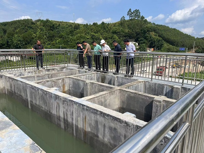 成榮勝一行仔細(xì)檢查了項(xiàng)目管道、泵站、機(jī)電等設(shè)施是否平穩(wěn)運(yùn)行。隨著取水泵站機(jī)組的啟動(dòng),水源源不斷流入絮凝沉淀池、濾池、清水池,最終通過(guò)泵房輸送出去,試水工作取得了圓滿成功。