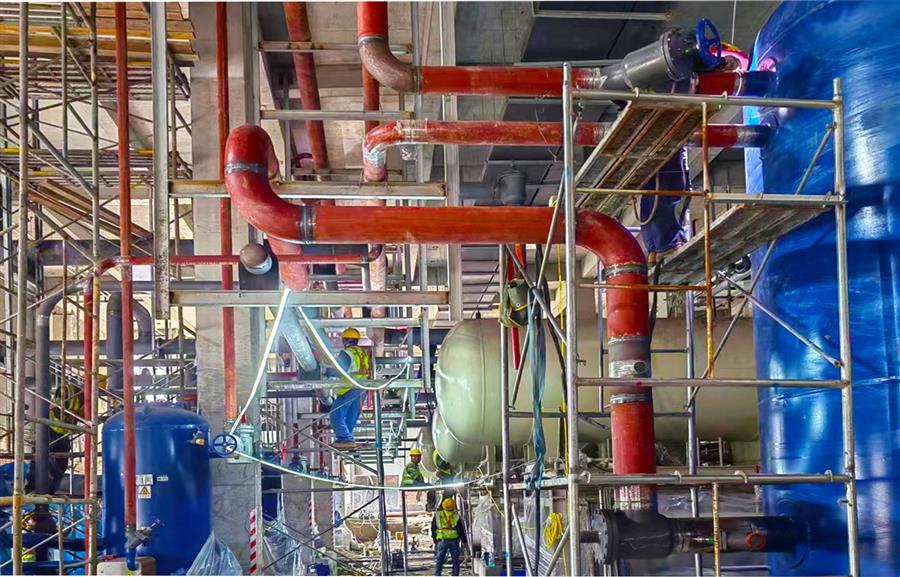 7月以來,項目部精心組織,細化項目施工任務(wù),抓住施工“黃金期”加快推進項目建設(shè)。項目全體人員頂著高溫酷暑,堅守崗位,高標(biāo)準、嚴要求,全力保障工程質(zhì)量和進度,推動項目建設(shè)順利有序進行。目前,項目1#玉米加工車間屋面蒸發(fā)冷設(shè)備安裝完成,管道安裝完成90%;壓縮機、桶泵機組設(shè)備完成安裝,管道安裝完成50%、速凍機組設(shè)備安裝完成40%;3#配送中心機房屋面蒸發(fā)冷安裝完成及管道安裝完成80%;4#冷鏈配送中心室內(nèi)設(shè)備及管道安裝完成90%。
