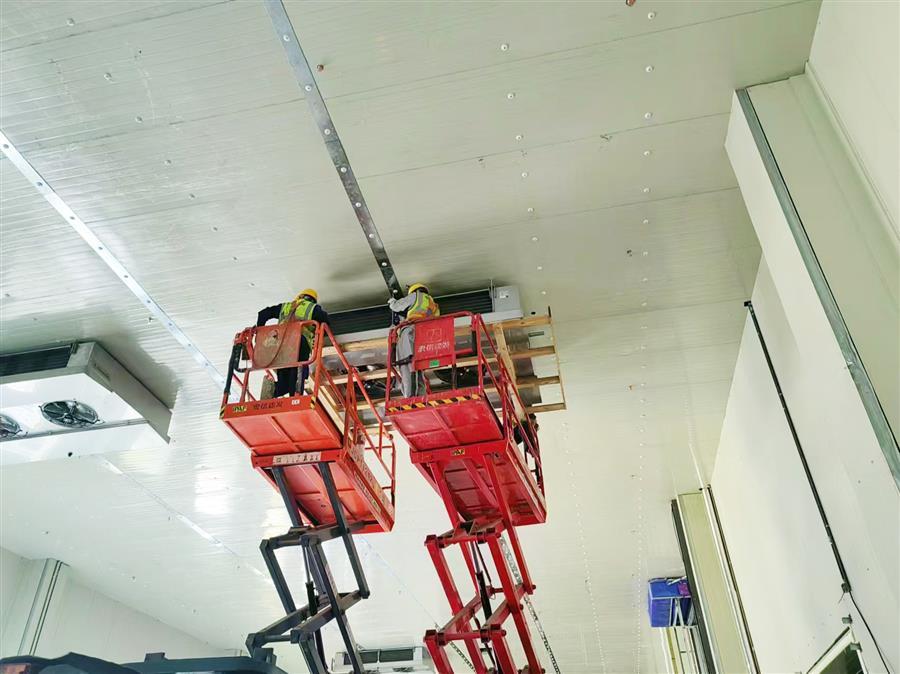 為做好施工現(xiàn)場管理工作,項(xiàng)目部緊扣時(shí)間節(jié)點(diǎn),科學(xué)優(yōu)化施工方案,確保每一項(xiàng)施工點(diǎn)都有人負(fù)責(zé)、有人監(jiān)督,全方位排查施工各環(huán)節(jié)安全情況,嚴(yán)格落實(shí)各項(xiàng)管控措施,根據(jù)施工進(jìn)度及時(shí)總結(jié)和部署作業(yè)事項(xiàng),確保安裝工程安全高效進(jìn)行。目前,項(xiàng)目1#玉米加工車間屋面蒸發(fā)冷設(shè)備安裝完成,管道安裝完成90%;壓縮機(jī)、桶泵機(jī)組設(shè)備完成安裝,管道安裝完成80%、速凍機(jī)組設(shè)備安裝完成80%。3#機(jī)房壓縮機(jī)、桶泵機(jī)組安裝30%。4#冷鏈配送中心室內(nèi)設(shè)備及管道安裝完成90%,管廊風(fēng)機(jī)安裝完成,管道保溫施工完成90%。