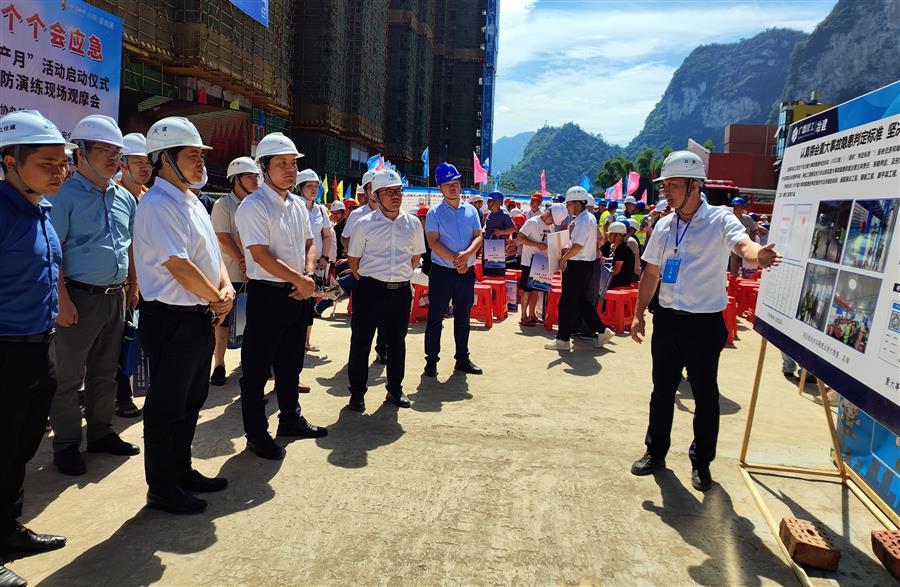 6月14日,河池市2023年“安全生產(chǎn)月”活動啟動儀式暨質量安全標準化、消防演練現(xiàn)場觀摩會在冶建公司桂金分公司承建的河池?澳門國際城四期項目部舉辦。河池市住房和城鄉(xiāng)建設局黨組成員、副局長韋鵬致辭并宣布“安全生產(chǎn)月”活動啟動,冶建公司總經(jīng)理、黨委副書記蒙勝益參加并講話。觀摩會由河池市建設工程質量安全監(jiān)督站副站長覃安納主持。