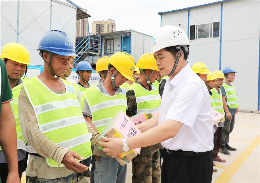 7月27日、28日,冶建公司總經(jīng)理、黨委副書記蒙勝益先后到深圳分公司承建的羅城硅晶新材料研發(fā)開發(fā)制造一體化項目(一期),第四分公司承建的柳州市河表片區(qū)標(biāo)準(zhǔn)廠房(一期)項目,開展“送清涼”慰問活動,為堅守在項目一線的建設(shè)者送去公司的關(guān)懷和防暑降溫物資。