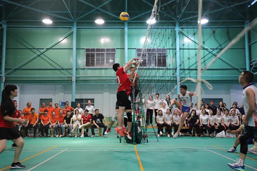 當天下午3點30分,隨著裁判員清脆的第一聲哨響,氣排球決賽正式拉開帷幕。各組參賽隊員,身著各組統(tǒng)一的比賽服,抖擻精神,拉滿戰(zhàn)斗值,在球場上激烈角逐。傳球、吊球、扣殺,參賽人員用自己精湛的技術和熟練的戰(zhàn)術配合,相互較量著實力,展示著氣排球運動的精彩魅力,現場加油聲、喝彩聲經久不停,比賽現場十分激烈精彩。