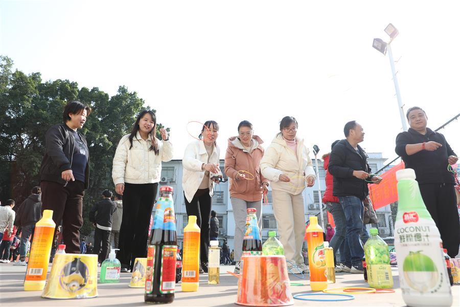 活動(dòng)現(xiàn)場(chǎng)處處歡聲笑語(yǔ)、熱鬧非凡,一派歡樂(lè)祥和的景象。在集體項(xiàng)目團(tuán)隊(duì)滾鐵環(huán)接力賽、單腿跑火車接力賽中,參與比賽的員工配合默契、銜接緊密、奮力爭(zhēng)先,場(chǎng)面激烈,觀眾的掌聲、笑聲、喝彩聲此起彼伏。游園活動(dòng)還設(shè)置擲壺、飛鏢、滾球入桶、定點(diǎn)投籃、盲人擊鼓、套活雞活鴨等8項(xiàng)個(gè)人項(xiàng)目,大家有序排隊(duì)積極參與,樂(lè)在其中,收獲滿滿,為即將到來(lái)的蛇年新春增添了滿滿的喜氣。
